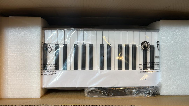 پیانو تاشو دارای کاور همراه-پدال پا-شارژر و کابل شارژر 88 کلاویه حساس به شدت نواختن می باشد